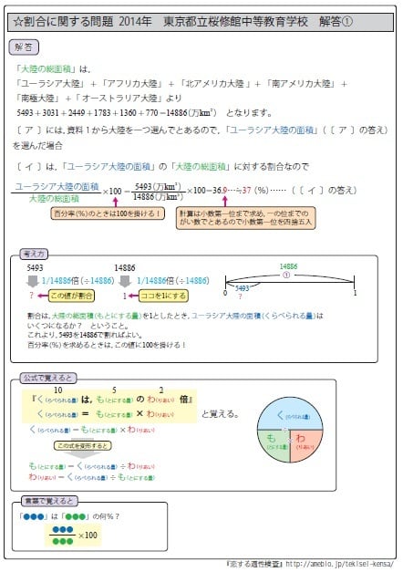 全国の公立中高一貫校の適性検査の過去問題の中から「割合」に関する問題を集め、徹底的に分析しわかりやすく解説しています。