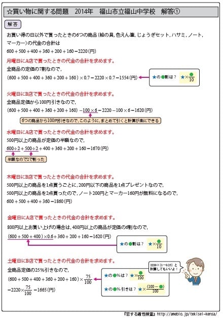 「買い物に関する問題編」公立中高一貫校 適性検査 テーマ別 よくわかる過去問題解説集