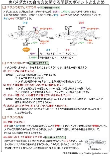 ・魚(メダカ)育ち方に関する問題 全31ページ(まとめ集1ページ、過去問題解説集30ページ)